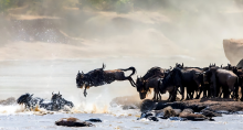 ● 全天在马赛马拉追逐动物,今天的亮点在于是否 有幸可以观赏到在马拉河边上演的“天国之渡”壮 观场景。(早上 8:00 出发,下午 16:00 返回)。 当您行驶在茫茫原野,看到上千只角马在马拉河畔 集结时,看到长颈鹿、斑马、角马、非洲水牛、羚 羊、大象同框吃草喝水时,看到两只小狮子在母狮 的怀里喝奶,刚出生的小羚羊、小斑马跟着妈妈蹒 跚学步时,此刻只能由衷感慨天地之大、自然之奇、 生命之美。